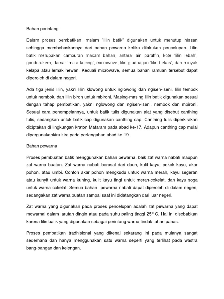 Bahan Perintang Dalam Proses Pembatikan Malam Lilin Batik Digunakan Untuk Menutup Hiasan Sehingga Membebaskannya Dari